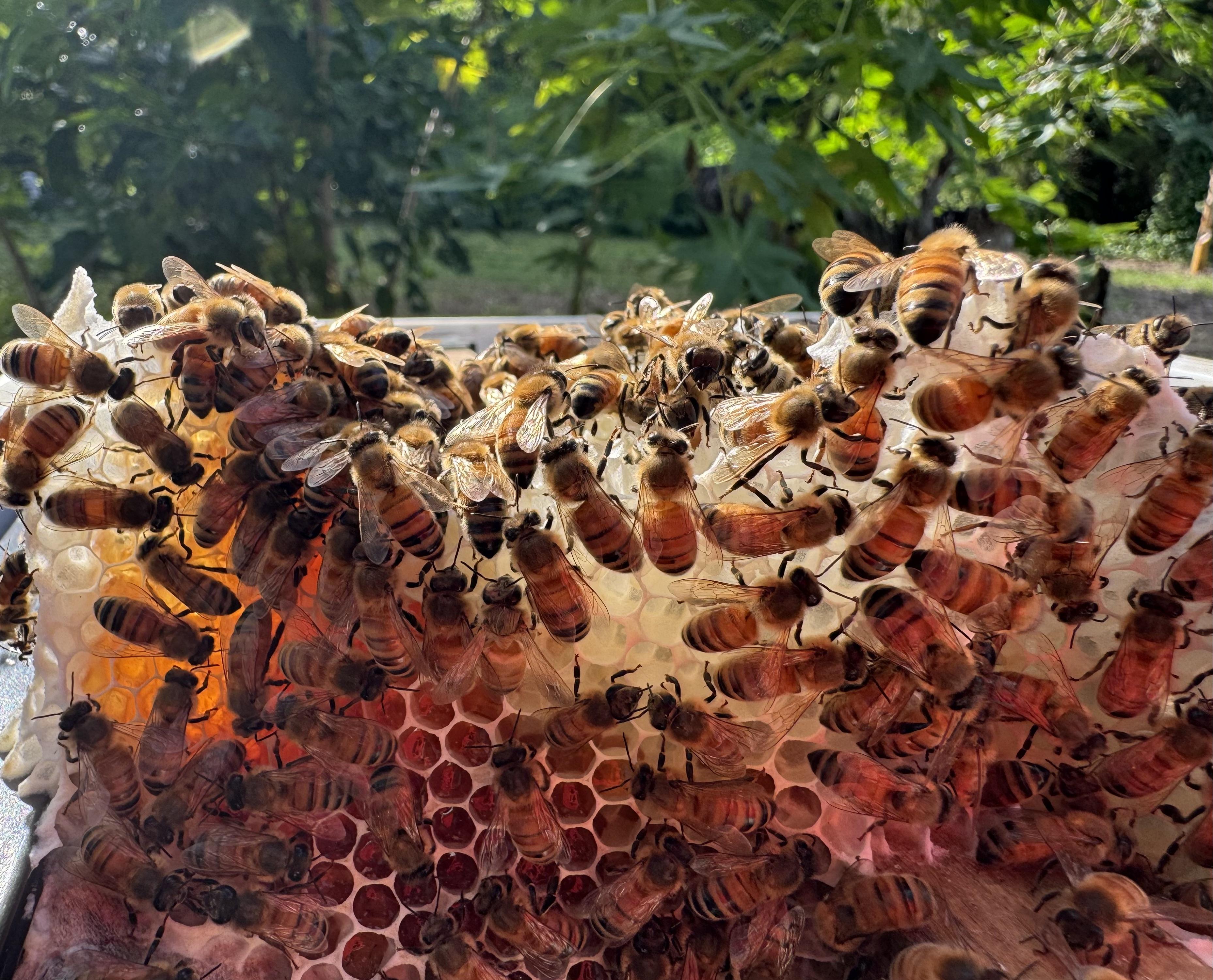 'While staying on Cocos Keeling Island , I had the pleasure of receiving a bee healing meditation from Paula. The experience of laying close to an active beehive and feeling their energy was awesome.' A bee healing Bronwyn Cox. November 2024